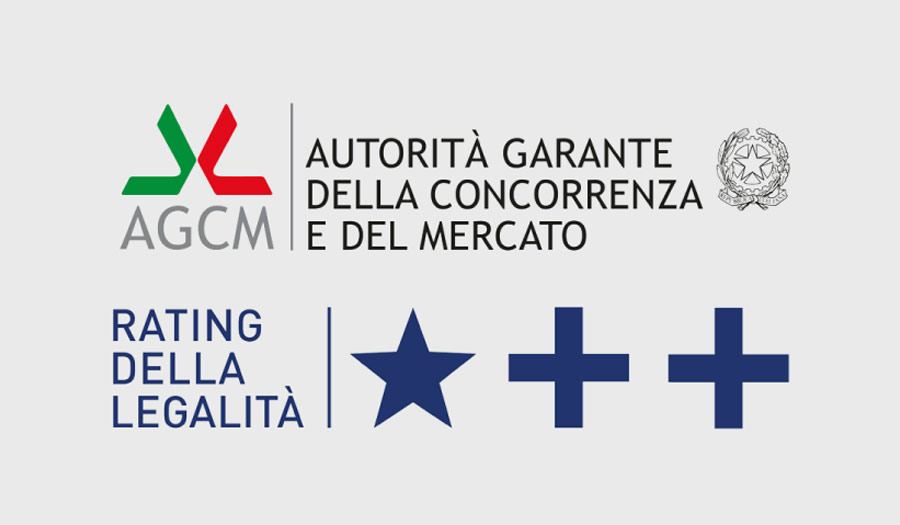 In data 2 agosto 2019 ci è stato attribuito il Rating di Legalità dell’Autorità Garante della Concorrenza e del Mercato (A.G.C.M.) con punteggio ★ ✚✚